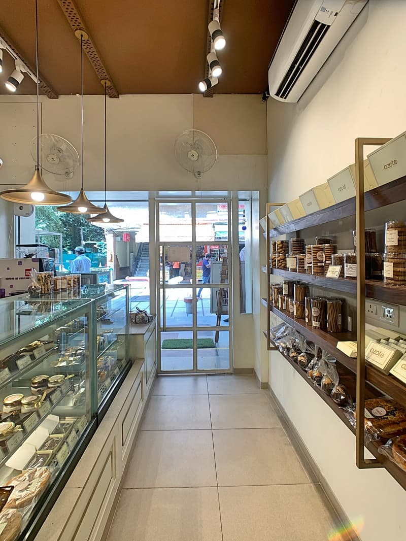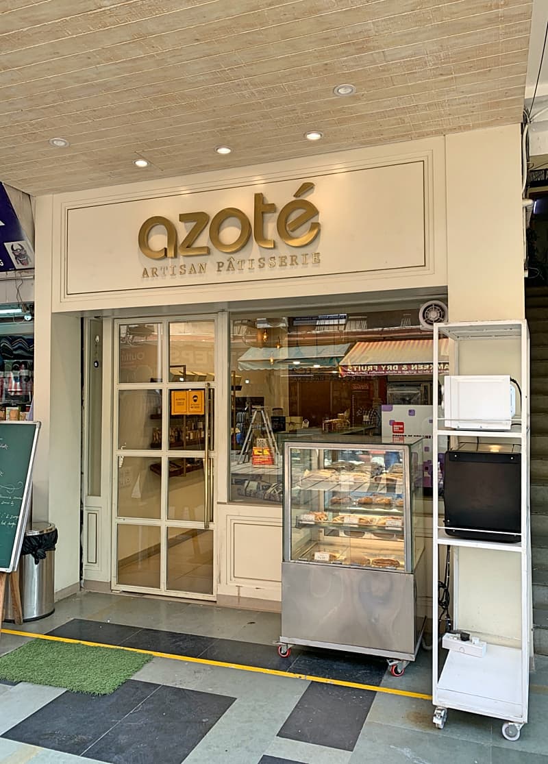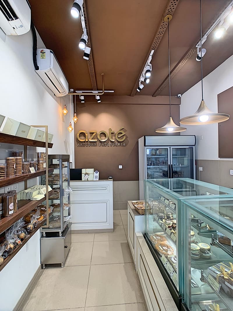 A start up of a young entrepreneur, a pastry chef, Azote was a and F&B outlet for which the entire look and feel was conceived as a fusion of an old world charm with a modern interpretation. The brand was built in terms of aesthetics, design detailing, display formats and visual communication, all in house. The choice of light colours and materials was based on the projection of the brand personality. The intimate scale of the space was seen as an opportunity.
