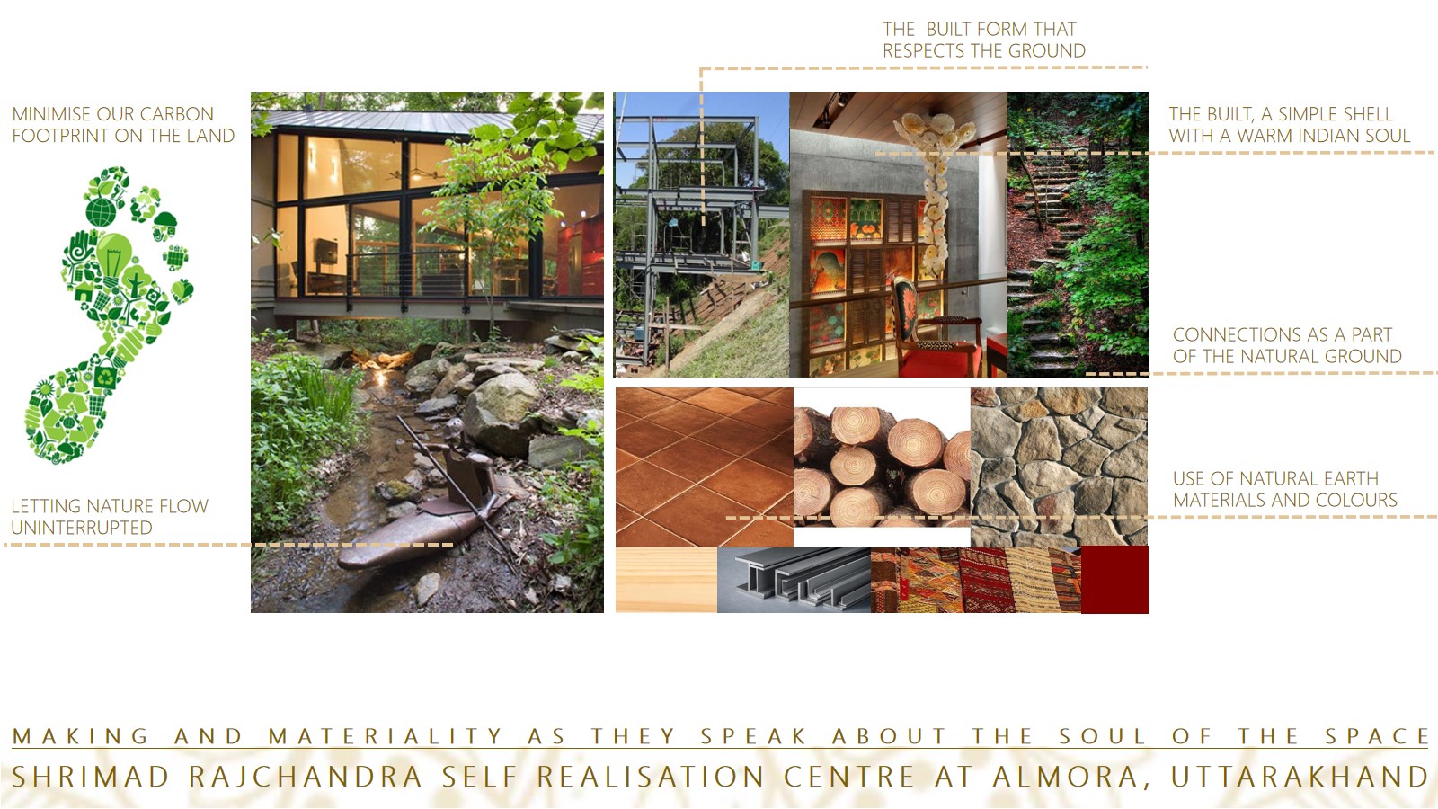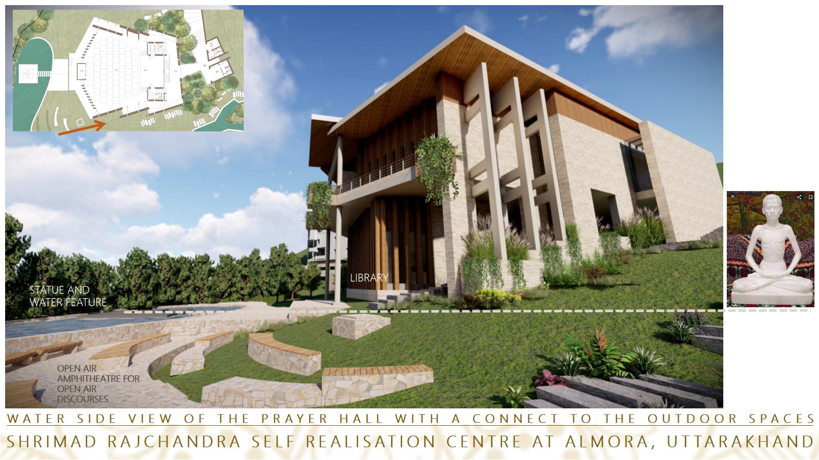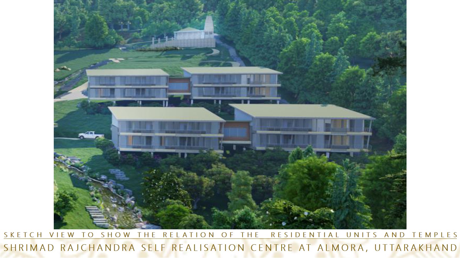 A vision of creating a place and a space to elevate the soul and carry forward the essence and teachings of Param Kripalu, Shrimad Rajachandra ji. Nestled in the beautiful hills of Uttarakhand with a full pan view of the Majestic Himalayas, the site has been a challenge and a beautiful experience to work with.