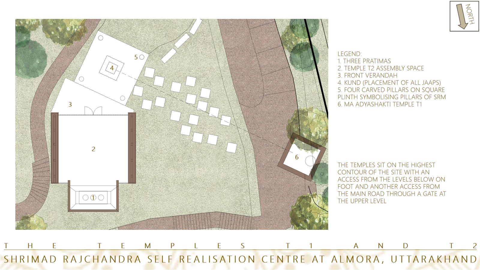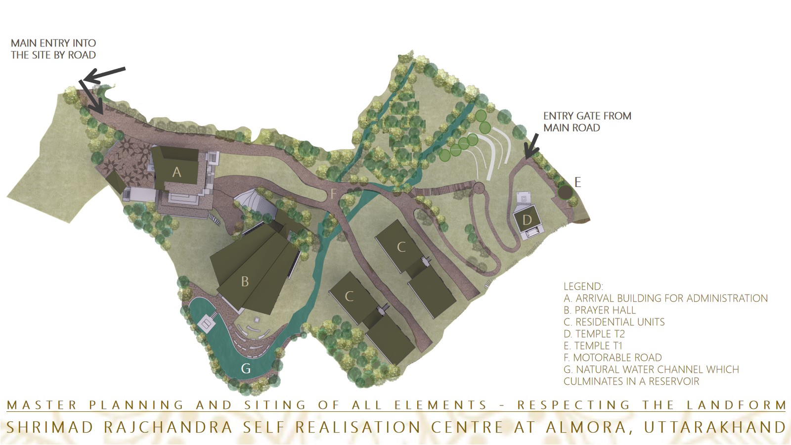 "A Journey" being the core concept of the entire planning, as one goes along at the level of site experience of the experience of each built space within, you shed the clutter to come as close to the essence of the core of SRM and its philosophy.
